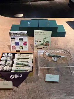 Not only souvenirs from Karuizawa, but also many things that you may have come into contact with during your stay, such as the in-room wear and walking bags that were in the room, and tin products, are lined up.