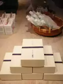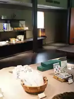 Teas and sweets that were used during the stay, as well as Hoshino Resorts original goods are lined up in a small space 😊