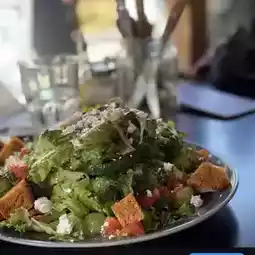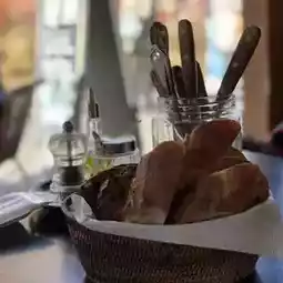 The lunch menu includes meat dishes, fish dishes, pasta, and special burgers made with buns unique to the bakery.