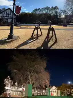 Night: There is a road that leads to 7-Eleven. When I came back, I saw a hotel with sunbathing lights on. It felt really safe ⭐️🌕