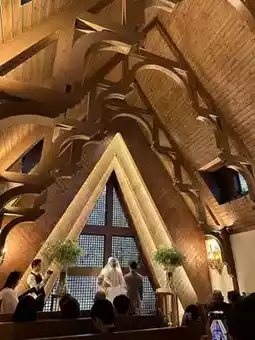My journey to Karuizawa began with a uniquely styled wedding. The wedding was held in a chapel primarily made of wood, simple yet solemn. The chapel's design is unique, with triangular windows casting soft light, creating a sacred and warm atmosphere.