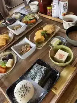 The wide variety of side dishes makes the onigiri even more delicious 🍙