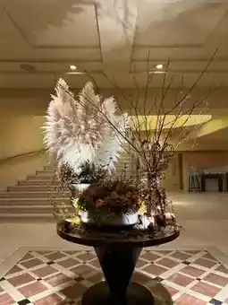 In autumn, the entire hotel is adorned with vibrant fall leaves and seasonal flowers. The pathways and gardens within the property are decorated with pampas grass, dried flowers, and tree nuts, creating a warm and natural ambiance. It feels like stepping into a fairytale world of autumn.