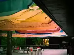 Follow the wooden walkways that wind through the trees and you’ll find seasonal fabric art installations, beautifully displayed across the terrace — a lovely blend of tradition and design that changes with the seasons.
