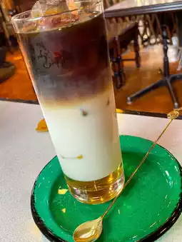 The cold-brewed iced coffee, which takes more than 8 hours to brew, and the chocolate cake, which takes 4 days to make, are said to be excellent, but I couldn't resist the temptation and ordered the shop's special drink, "Campone" 😅