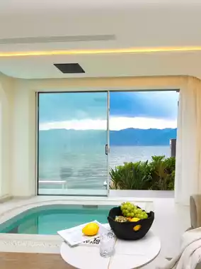 ✨ Relax and enjoy dinner and a hot spring spa in a luxurious setting with a flickering fireplace