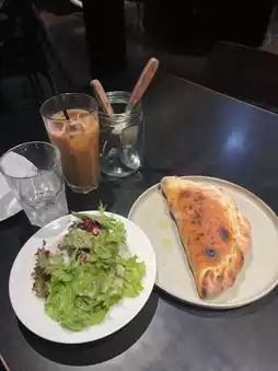 - Calzone pizza: The crust is slightly browned and fragrant, the ingredients are plentiful, the cheese and tomato sauce blend just enough flavor, the bite is warm and super filling.