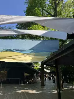 We strolled along the deck surrounded by greenery, browsing cafes and general stores. A lemon soda sipped in the dappled sunlight brought a refreshing summer feeling. 🍋
