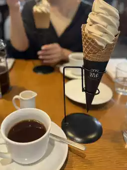 This roaster, originally from Karuizawa, offers a cup of coffee with a pleasant deep-roasted aroma and soft acidity. ☕️ The soft-serve ice cream is also excellent.