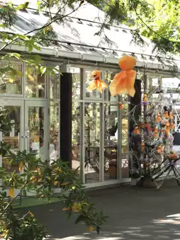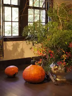 The flower arrangement artist Kariyazaki was holding an exhibition there, and the Halloween-themed display at Suikyu-so, arranged by Kariyazaki, was absolutely stunning.