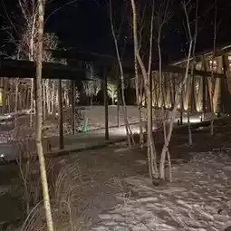 The building leading to the guest room building is covered in snow, which gives it a charming feel.