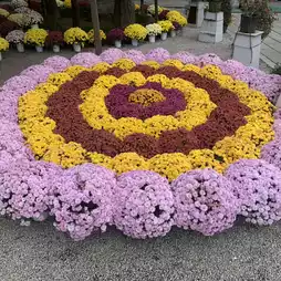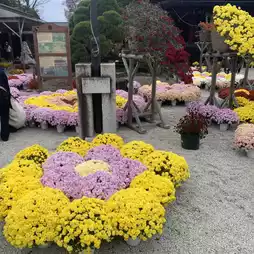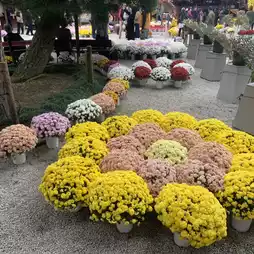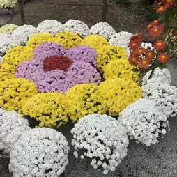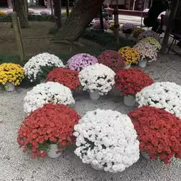 chrysanthemums of various colors, including yellow, white, and pink, bloom in full glory.