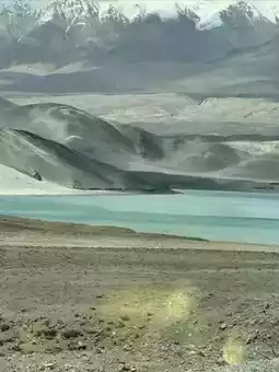 Above the Pamir Plateau, there lies a blue jewel, pure as if it were heaven. The white sands are boundless, and the lake water is crystal clear; this is Baisa Lake in Xinjiang.