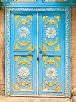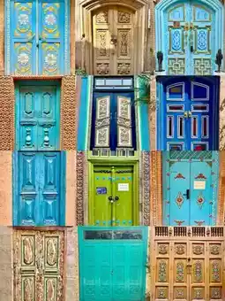 📺 The tall and spacious colorful doors sometimes blend seamlessly with their surroundings in a single hue, while others showcase ingenious craftsmanship, with patterns and carvings that reflect the owner's passion for life.
