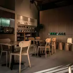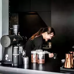 The building has a stylish exterior that blends in with coffee and into your daily life.