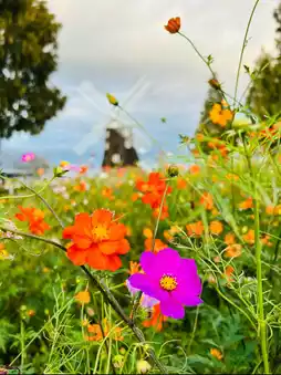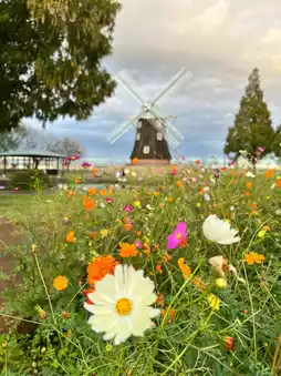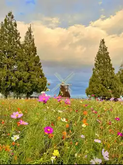 Windmills, heart-shaped benches, and doors to anywhere!! A cosmos field that you wouldn't believe is free 🌼The best time to see them is still a little ways off, but it's worth going!! Please go and check it out 🐈⬛ ͗ ͗〰︎︎❤︎Best time to see cosmos: Early to late October