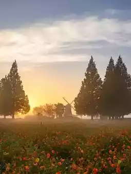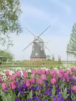 It's a bit disappointing that the flowers face the opposite direction with the windmill in the background◎