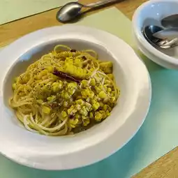 This time I added cheese to the pizza, so they grated it right in front of me, and it was fluffy!