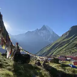The most enchanting aspect of my one-day stay at Annapurna Base Camp was undoubtedly the mesmerizing view that unfolded before me. The towering peaks of the Annapurna range formed an awe-inspiring amphitheater, embracing the base camp. As I gazed at Annapurna I, Annapurna South, and the iconic Machapuchare, I felt like I was in the presence of giants. The sunlight danced on the snow-capped summits, casting a golden glow that painted the entire scene with a touch of magic. It was a view that words could scarcely capture, a symphony of nature's beauty that left an indelible mark on my heart.