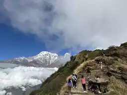The trek begins in a tranquil forest. As you walk through ferns and moss-covered trees, you're surrounded by the chirping of birds and crisp, fresh air. Eventually, as you rise above the clouds... a breathtaking panorama of the snow-capped Himalayas unfolds before your eyes! ❄️