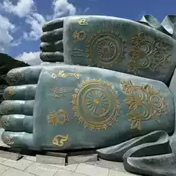 The soles of the Buddha's feet are also impressive, and the pattern on the soles of his feet is said to contain the Buddha's precious teachings and his compassionate heart