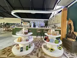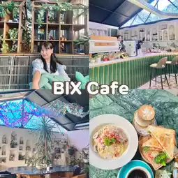 BIX CAFE, a trendy cafe with a variety of styles in one shop. The inside is very spacious, with lots of seats, and many zones for tables. The decorations include trees, seats, and pillows in bright colors. This is another shop that people in Kathu like to come to. The shop is comfortable to sit in.