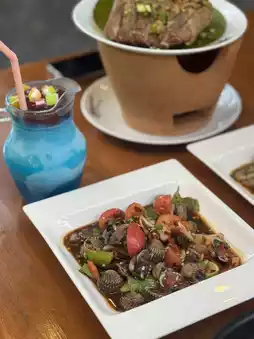 CRAZY SEAFOOD KATHU is located at 26/18 Wichitsongkram Road, Tambon Kathu, Amphoe Kathu, Phuket. It is a small shop but hides the spiciness of seafood and various fusion dishes. The signature menus include general seafood such as grilled shrimp, grilled squid or fish, or Isaan-style menus such as Somtam Saibua Kung Sod, Larb Hoi Rom, or Japanese-style fusion dishes such as Soba or cold noodles. Here, you can find them.