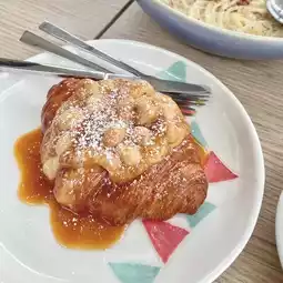 🍰 The shop serves both savory and sweet food and drinks. The croissants and croffles here are homemade, freshly made every day.