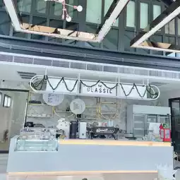 The interior of the shop is decorated in white tones, clean and in a Christmas theme, warm, inviting, and super cool. 🌿