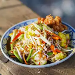 Spicy, delicious, and spicy in Kathu area, Som Tum Tiang Non, come and try it and you'll love it. The signature menu is pork with fermented fish sauce, grilled chicken Tiang Non, and the spicy papaya salad with fermented fish sauce is the best. ❤️🔥