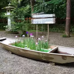 When I went, the irises were blooming beautifully, and apparently there was an iris festival being held in a nearby place called Sawara, so I saw an interesting way of decorating it, irises arranged in a boat-shaped pot for that event😆