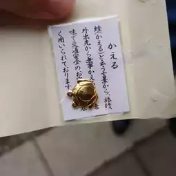 The shrine also has several types of fortune-telling slips, and this time I tried drawing one with a charm attached, and got a golden frog charm!
