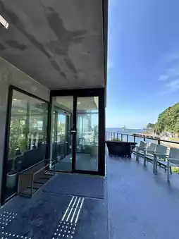 A unisex bathing suit spa on the second floor where you can enjoy natural hot springs and saunas while looking out at the sea