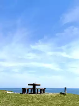 There are tables and chairs on the top of the hill, so you can take a break here while looking at the view.
