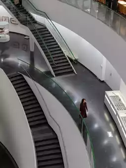 It is an underground dome, and when you enter you are on the third floor, and you start by taking an escalator down to the first basement floor, but the escalator, which runs in a straight line, has an incredible futuristic feel to it... The symmetrical design looks like a spaceship๐ or a rib... ๐ฉปโ