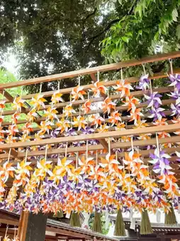 The colorful votive plaque tunnels lined up in the shrine grounds and the unique sea bream fortune slips gently envelop the hearts of visitors.