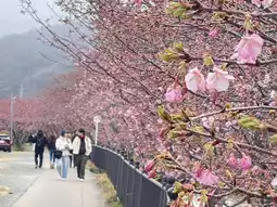 #Get a discount without relying on luck 🌀🌸 Kawazu 2025 #The place to see pink cherry blossoms that bloom before anyone else. The Kawazu Zakura Festival is held every year during February-March. It is a pink Kawazu cherry blossom that blooms in winter and here it is lined up very beautifully. It is a popular place for Thai tourists. This year, it bloomed quite late. The picture was taken on 25.02.2025.