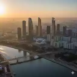 ✨ The glittering skyscrapers of the sunrise captivate everyone.
