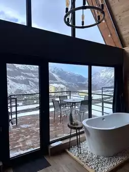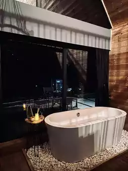My favorite part was their large bathtub. At night, I'd enjoy a glass of red wine 🍷, play my favorite music 🎵, and take a bubble bath 🛁 while gazing at the dark valley—pure bliss 😆