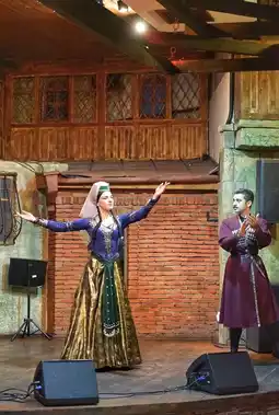 【Cuisine】: Churchkhela (caramelized walnut strings), Khinkali (Georgian dumplings), Badrijani Nigvzit (eggplant with walnut paste), Mtsvadi (grilled meat skewers), etc.
