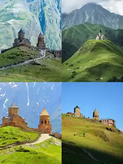 1. Kazbegi: Towering snow-capped mountains and vast grasslands make you feel like you're in a painting.
