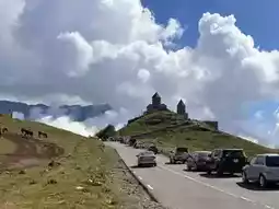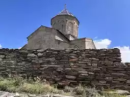 Located north of Kazbek (Stepantsminda), this church stands on a hill at an altitude of about 2,170m, and is an iconic piece of architecture of the Georgian Orthodox Church, built in the 14th century. The view is outstanding, and the view with Mount Kazbek in the background is a truly spectacular symbol .