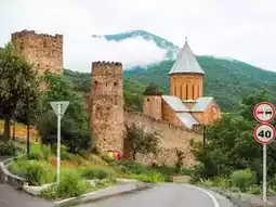 Perched on a hill at an altitude of 2,170 meters, this church was built in the 14th century and serves as a sacred site of the Georgian Orthodox Church. The contrast between the snow-capped Mount Kazbek in the background and the church is stunning, and its appearance amidst the mist evokes a dreamlike world.