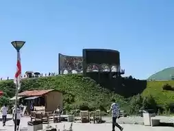 Surrounding the monument, visitors can enjoy a breathtaking 360-degree view of the Caucasus Mountains. It's an experience that combines Soviet-era architectural art with stunning panoramic mountain scenery. Additionally, paragliding activities are available here, and the cool, pleasant weather makes the visit even more enjoyable.