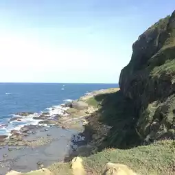 Standing at the entrance of the trail, you can see a green meadow on the cliff with white Miscanthus (flowers), connected to the endless blue sea. When the weather is good, you can also clearly see Keelung Island in the distance. The scenery is so beautiful.