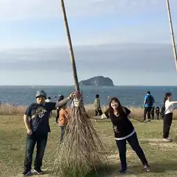 The famous flying broom is an art installation made of driftwood. When we arrived, there were people taking pictures with every broom. This lively scene made me feel like I had entered the Harry Potter arena scene!