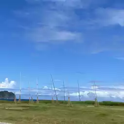 Tideland Park: Artificial photo spot, stone gate/broom/blue sky and white clouds