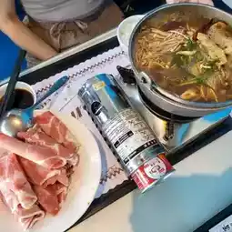 This time I ordered hot pot, braised beef brisket set meal, and spicy chicken set meal (the set meal includes drinks, side dishes, and desserts~)