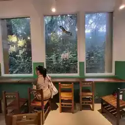 The second floor of the bookstore is the main seating area. The seats on the second floor cannot see the sea view, but the large landscape windows can see the tropical plants on the mountain wall~