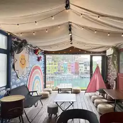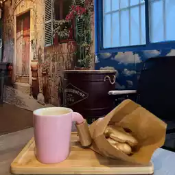 This coffee shop has three floors. You can see the entire row of rainbow houses from the balcony on the third floor😻 It can be said to be an excellent photo location, as the cover photo was taken here!